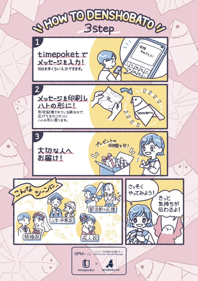 株式会社エヌケー「DENSHOBATO」 紹介ポスター 公開日:2021.12.21 / 最終更新日:2026.02.21 お仕事・掲載情報ピックアップ 株式会社エヌケー様「DENSHOBATO」サービスの紹介ポスターを制作しました。 メッセージを印刷した用紙をハトの形に折ってお届けするサービスです。 マンガ形式、使い方マニュアル形式の2パターン制作しました。 幅広い年代が親しみやすく、あたたかみが出るよう仕上げました。 ポスターはギフトショーで掲示いただきました。 コメントは受け付けていません。 前の記事へ« SUZURIでアイテム販売中! 次の記事へFOOD 2023(artbook事務局)作品掲載 »
